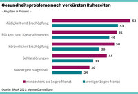 Besonders heikel ist der Ruf nach Mehrarbeit und der Streichung oder Öffnung des Arbeitszeitgesetzes vor allem aus gesundheitlicher Sicht. Sollten tägliche Arbeitszeiten von über 12 Stunden erlaubt werden, drohen ernste Gefahren. Bereits jetzt leiden Beschäftigte, die von verkürzten Ruhezeiten betroffen sind, öfter unter Rückenbeschwerden, Schlafstörungen und Erschöpfung (siehe Grafik). Ebenso lösen kürzere Regenerationsphasen verschiedene Erkrankungen des Herzkreislaufsystems und Depressionen aus. Nach acht Stunden steigt das Unfallrisiko am Arbeitsplatz deutlich.