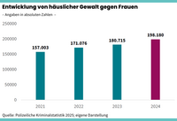 Dass noch viel zu tun ist, machen die amtlichen Statistiken mehr als deutlich. So wurden 2024 in Deutschland fast 200.000 Frauen Opfer von häuslicher Gewalt, meist ausgeübt durch ihren (Ex-)Partner. Die Fallzahlen sind in nur vier Jahren um mehr als ein Viertel angestiegen (siehe Grafik). Digitale Gewalt gegen Frauen nahm laut eines BKA-Lageberichts in den letzten Jahren ebenfalls um 25 Prozent zu. Die Straftaten gegen queere Personen haben sich seit 2010 fast verzehnfacht. Es sind Zahlen, die schockieren, wobei von hohen Dunkelziffern ausgegangen werden muss.