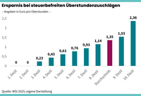 Klar ist: Geht die Arbeitszeit über die normale Vollzeittätigkeit hinaus, bringt dies Gesundheitsrisiken für die Beschäftigten in Form von Herz-Kreislauf-Erkrankungen und psychischen Problemen mit sich. Jenseits dieser Dimension handelte es sich bei dem Vorhaben aber um eine Blackbox. Weder war bisher klar, wie viele Beschäftigte vom geplanten Steuerprivileg profitieren, noch wie hoch die Entlastungen ausfallen würden. Auch über die genauen Verteilungswirkungen gab es keine Erkenntnisse. Aber nun hat das Wirtschafts- und Sozialwissenschaftliche Institut mit einer Studie belastbare Daten vorgelegt.