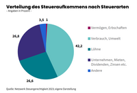 Dabei ist klar: Im Steuersystem liegt einiges im Argen, es ist von einem großen Ungleichgewicht gekennzeichnet. Zurzeit sind die Steuern auf Löhne und Verbrauch für fast 70 Prozent des gesamten Steueraufkommens des Staates verantwortlich. Auf der anderen Seite liegt der Beitrag von Vermögen und Erbschaften mit nur einem Prozent kaum noch im messbaren Bereich (siehe Diagramm). Gemessen an ihrer finanziellen Leistungsfähigkeit zahlen also jene, die über sehr viel Geld verfügen, fast nichts in die öffentlichen Kassen ein.