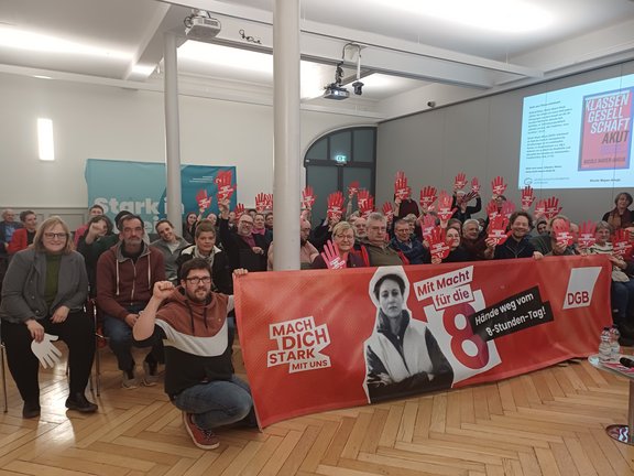 Die Beschäftigten unterschiedlicher Branchen schilderten plastisch konkrete Arbeitsbedingungen z.B. in Schichtdiensten in der Pflege, im Krankenhaus und in der Gastronomie, die schon jetzt zu Erschöpfung und schwieriger Vereinbarkeit von Arbeit und Sozialleben führe.